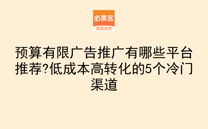 预算有限广告推广有哪些平台推荐?低成本高转化的5个冷门渠道