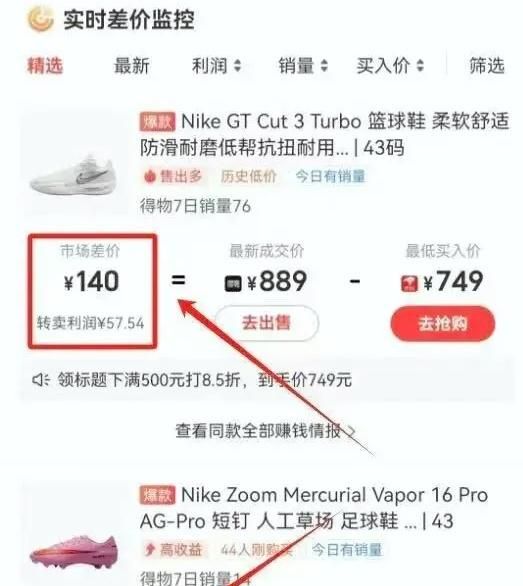 这个项目本质就是赚信息差的钱,简单来说,就是从其他平台淘到价格更低的商品,加价放到得物上售卖,靠两个平台之间的差价赚取利润,单笔收益还是相当可观的。