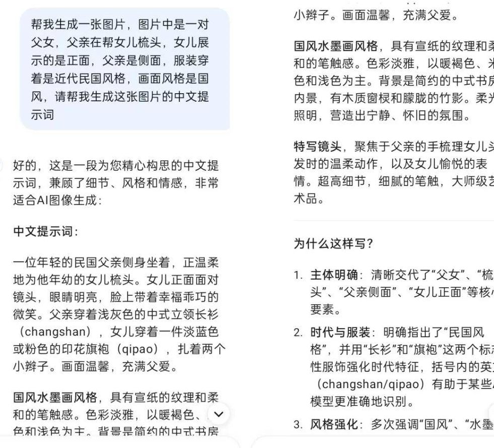 操作二:优化图像提示词。豆包生成的提示词较为笼统,直接使用会导致图片细节缺失。因此,需借助deepseek工具进行增强。向deepseek输入核心场景需求,它可生成一段包含丰富细节的专业级提示词。这样做的目的是从源头上提升最终画面的艺术表现力。