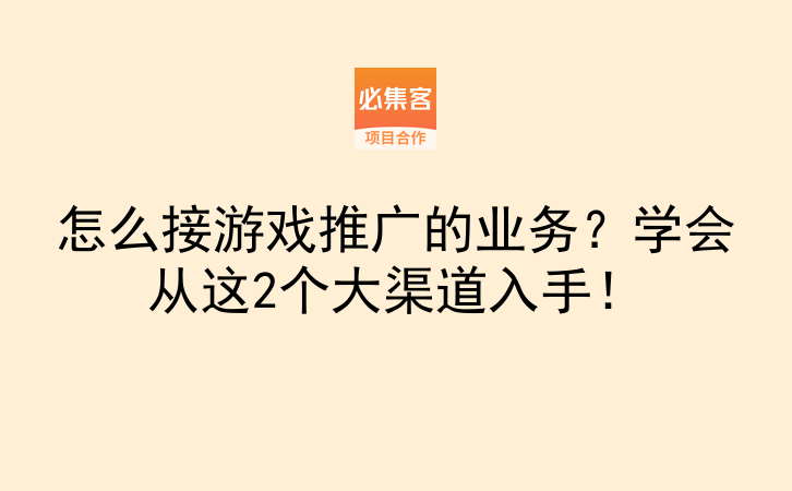 怎么接游戏推广的业务?学会从这2个大渠道入手!