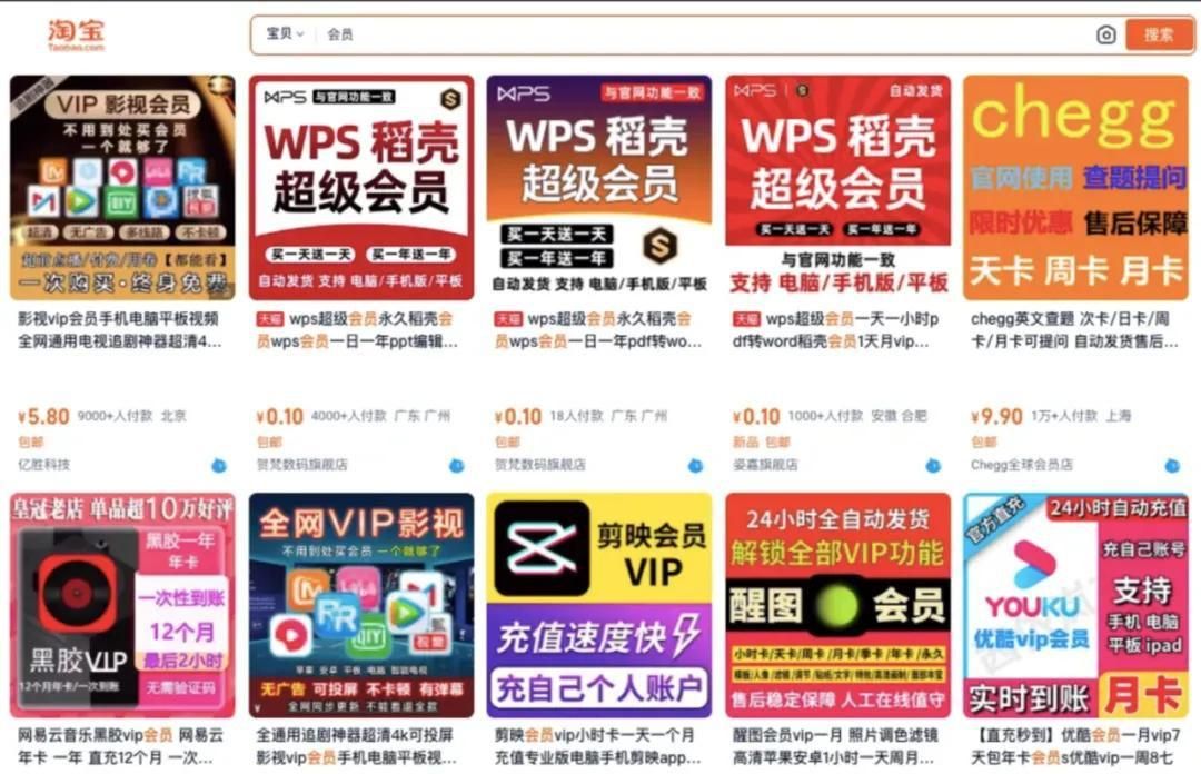 网盘会员、小说会员、影视会员、游戏会员、文档类会员等……