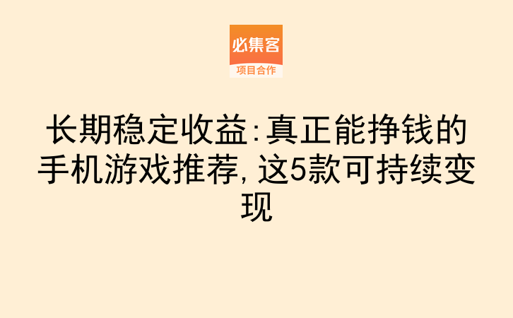 长期稳定收益:真正能挣钱的手机游戏推荐,这5款可持续变现