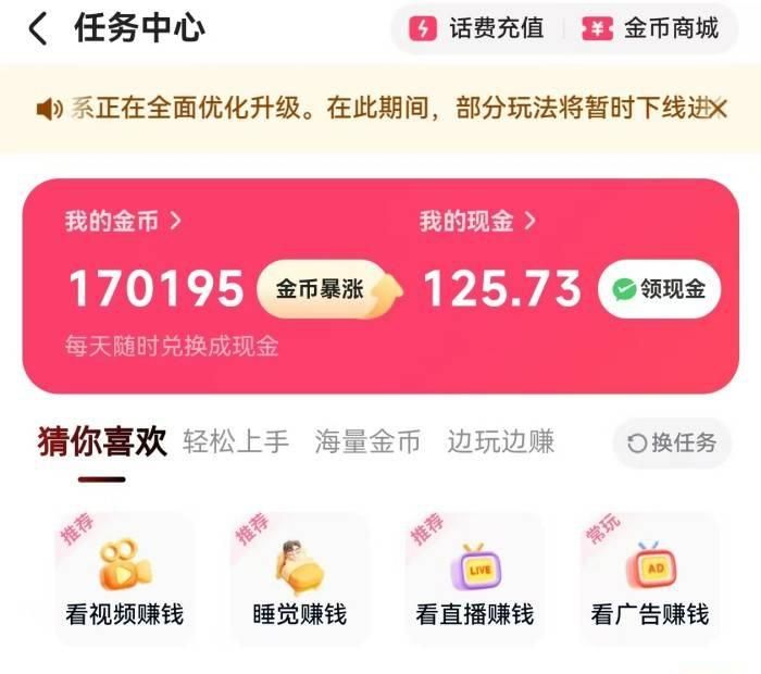 像抖音极速版、快手极速版、腾讯视频、红果短剧这类APP中,每天通过签到、看视频、开宝箱、看广告等任务均可赚取金币,金币自动兑换成现金,兑换比例常见10000:1或33000:1。掌握技巧的话,若整合多个平台操作,或同一平台多账号协同,日赚50元并非难事。