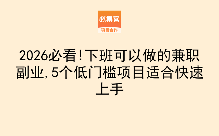 利用下班时间发展一份副业,已经成为当下的普遍选择,以上5个项目都是低门槛、易上手的下班可以做的兼职副业。选择一个符合自身兴趣与时间安排的项目开始尝试,保持稳定的执行节奏就能看到实际收益。必集客是一个项目资源对接平台,提供副业项目和合作资源,适合找合作、拓业务的朋友,也能为你提供更多靠谱的项目对接渠道。