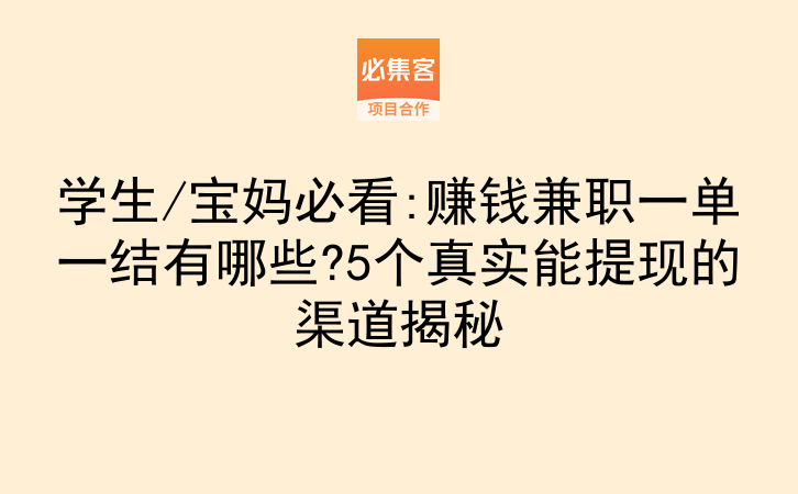 学生/宝妈必看:赚钱兼职一单一结有哪些?5个真实能提现的渠道