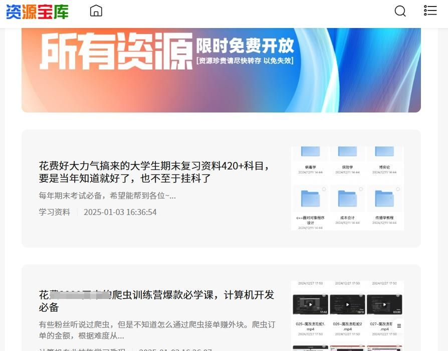 这个网站汇集了海量丰富的学习资源,涵盖瑜伽健身、自媒体副业、计算机专业技能学习、各类考公、教辅资料、Word办公技能培训等诸多领域,并且所有资源全部免费,博主还会定期更新上新资源,真的非常良心。