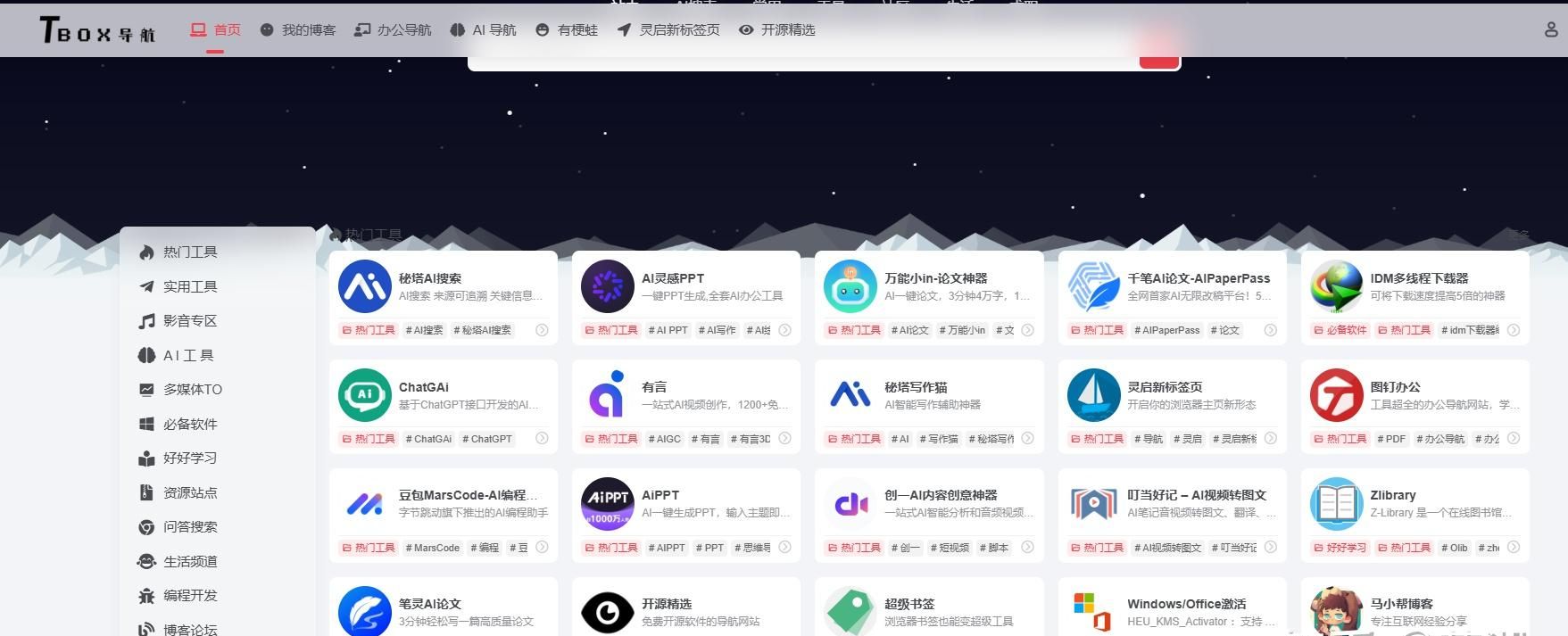 这是一个汇集了大量优质在线工具的导航网站,包含实用工具、影音工具、图片工具、编程工具、网络资源等几十种分类,全站只收录经过筛选的优质精品网站