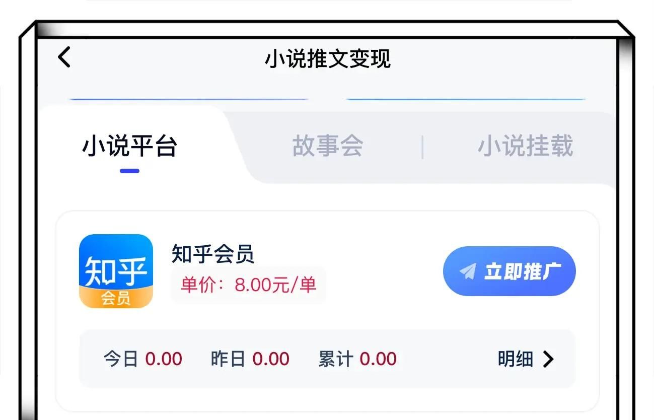 现在知乎会员推广的佣金分润基本都是一单一结:你通过推广知乎小说吸引用户充值会员观看,每成功转化一个就能拿到一单的收益,结算清晰不拖账。因此,知乎小说推文确实是真实可靠的一单一结手机兼职项目。