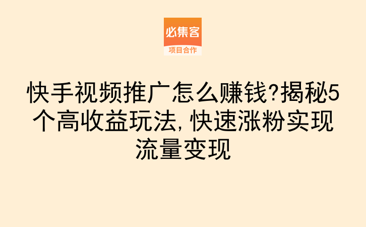 探索快手视频推广的变现路径,核心是结合自身能力选择适配的玩法,从基础激励计划积累经验,用带货和广告实现快速变现,靠知识付费和私域布局长期收益,逐步搭建起稳定的盈利体系。必集客是一个项目资源对接平台,提供副业项目和合作资源,适合找合作、拓业务的朋友,能为你提供更多资源对接和玩法参考,帮你在快手推广的路上少走弯路。