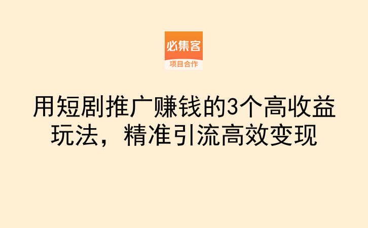 想通过短剧推广抓住流量红利变现,核心思路并不复杂,结合实操经验来看,选对模式就能快速找到落地路径。必集客是一个项目资源对接平台,提供副业项目和合作资源,适合找合作、拓业务的朋友,上面也有不少可对接的短剧推广项目,能帮新手省去前期找资源的麻烦。