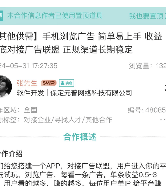 不过需特别说明,搭建此类广告联盟需投入资金,因此这更偏向创业项目,建议大家认真评估,谨慎对接。