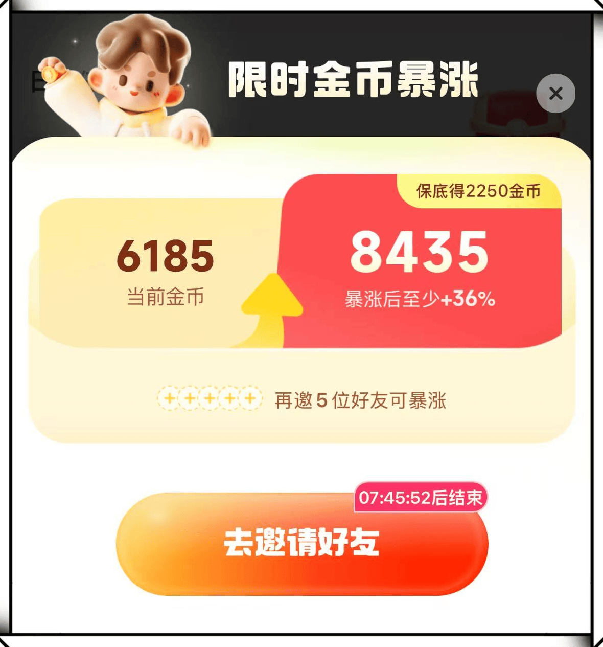 根据我们的实操经验,该任务单次金币奖励虽不算高,仅2250枚,但邀请的好友若能持续活跃,便能为我们带来持续的“金币暴涨”收益。