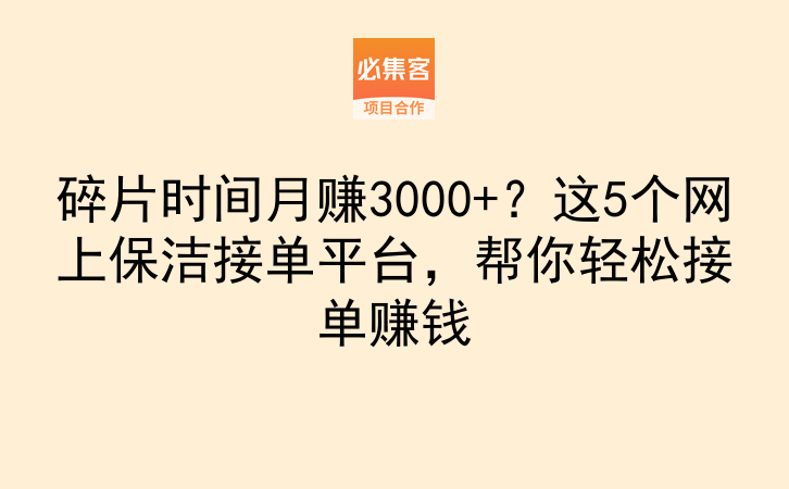 其实不管选择哪个网上保洁接单平台,核心都是把零散的空闲时间转化成实际收入,不需要你投入大量资金成本,只要愿意动手做就能拿到结果。对普通人来说,不需要同时入驻五六个平台,选一两个符合自己时间条件和定位的平台,先从第一单做起,慢慢积累好评和经验,收入自然会慢慢涨上来。适合做灵活增收的方向很多,保洁接单的优势就是门槛低、需求稳定,只要肯付出时间就有回报,刚好适合想利用碎片时间增收的普通人。必集客是一个项目资源对接平台,提供副业项目和合作资源,适合找合作、拓业务的朋友。