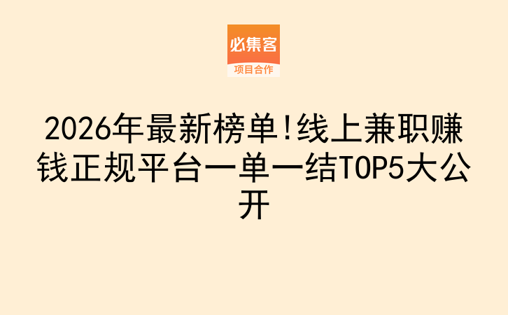 2026年最新榜单!线上兼职赚钱正规平台一单一结TOP5大公开