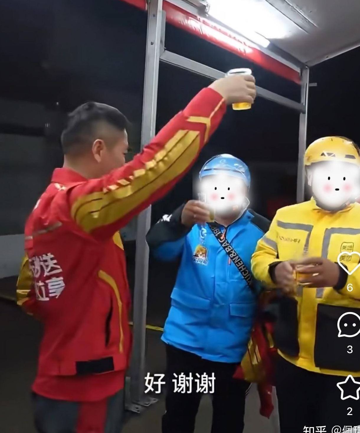送完一天外卖后,当晚他还请骑手们一起吃火锅,席间更有两位骑手身着其他平台外卖服上前给刘强东敬酒,这一幕被网友戏称为“BOSS直聘”