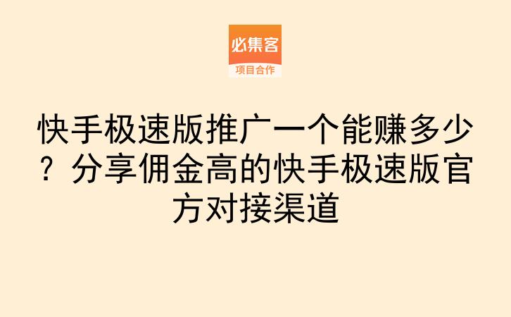 快手极速版推广一个能赚多少?分享佣金高的快手极速版官方对接渠道