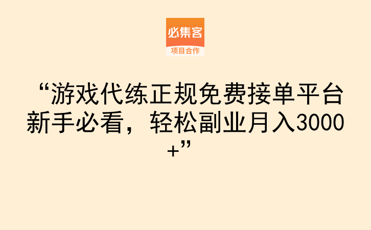 游戏代练正规免费接单平台新手必看,做到月入3000+