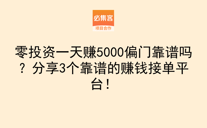 零投资一天赚5000偏门靠谱吗?分享3个靠谱的赚钱接单平台!