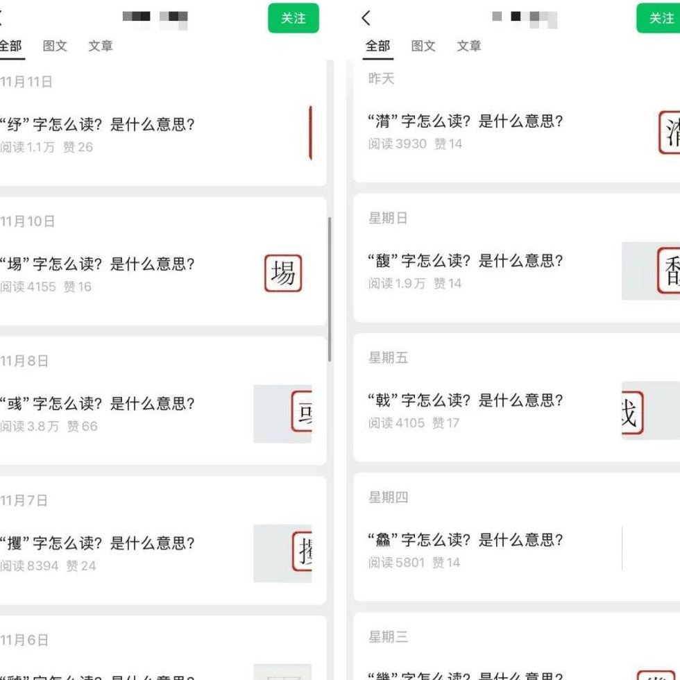 最近我一直在观察各类内容赛道,一直在寻找一种既能满足用户好奇心,又不会给创作者带来过重负担的模式。今天分享的这个“公众号做生僻字识读”案例,让我深受启发。当看到同行单日收益稳定在百元以上,且每篇阅读量均突破千次甚至上万时,我意识到,这背后恰恰印证了大众对于“知识盲区”的天然探索欲。