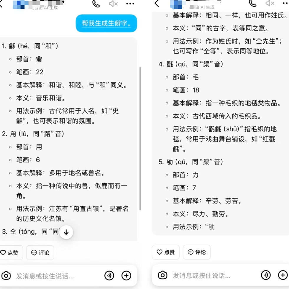 AI瞬间生成8个生僻字,并同步生成部首、笔画和释义。这让我意识到,未来的内容创作者,核心能力或许不再是单纯的“写”,而是“工具调用与整合”。我们正在从内容的“生产者”转变为内容的“组织者”。