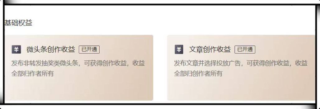 我们得先在账号的“基础权益”里查看是否开通了“微头条创作收益”和“文章创作收益”这两项权限。