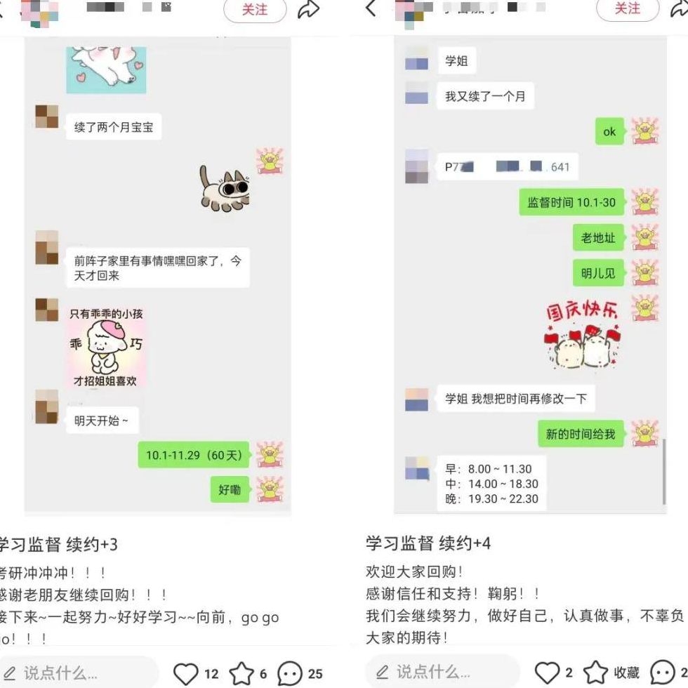 内容这块最省心。完全不用自己写文案,每天把督促学习的聊天记录截几张图发出去就行。这难度大吗?只要会打字就能做。