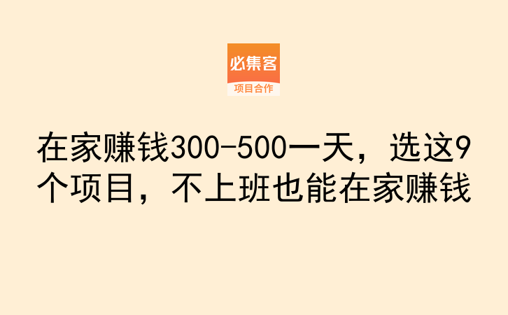 这些项目我都整理成了详细的操作笔记,包括每个项目的具体对接方式、避坑要点,想快速上手的话可以收藏起来慢慢看。有问题在评论区留言,我会尽量回复。对了,如果你觉得自己找项目太费时间,也可以看看必集客,它是项目资源对接平台,提供副业项目和合作资源,适合找合作、拓业务的朋友。赶紧行动起来吧,在家赚钱没那么难,选对方向+坚持执行,你也能做到日入几百。