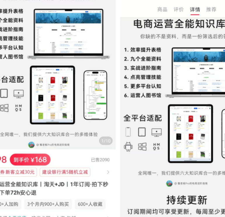 再看第二个对标账号,卖的是电商运营知识库,本质是博主整理的知识文档。该店铺单价198元,已售2090单,198元×2090单,算下来这个链接直接带来413820元收益!看到这个数字,是不是有些惊讶?其实只要找对方法,我们也能达到这样的效果,下面就把具体操作方法分享给大家。