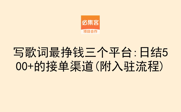 其实写歌词变现的渠道还有很多,比如给短视频平台的音乐号写文案,或者帮企业写品牌主题曲。如果你觉得自己找不到这些资源,不妨看看必集客是项目资源对接平台,提供副业项目和合作资源,适合找合作、拓业务的朋友。我认识的几个全职写词人,都是通过这类平台接到了影视公司的长期合作,收入稳定了不少。赶紧收藏这篇文章,现在就去注册账号,第一个作品可能就会给你带来惊喜哦。有问题在评论区留言,我会一一回复。
