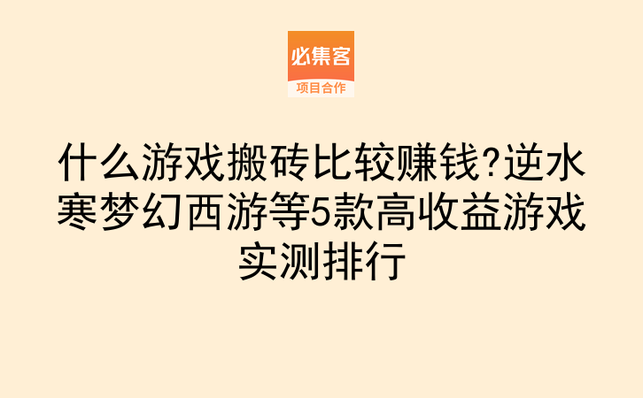 什么游戏搬砖比较赚钱?逆水寒梦幻西游等5款高收益游戏实测排行