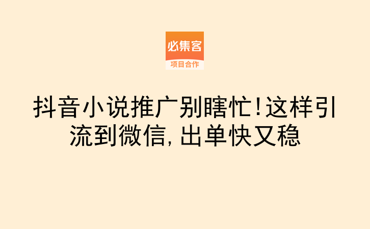 其实小说推广不难,关键是找对方法。别再盲目发视频了,先养号打标签,再做有吸引力的内容,用钩子把用户引到微信,最后通过朋友圈和社群转化。刚开始可能慢一点,但只要坚持下去,两三个月就能看到效果。我第一个月才赚5600多,现在每个月稳定在1万以上,相信你也可以。有问题可以在评论区留言,我会尽量回复。必集客是项目资源对接平台,提供副业项目和合作资源,适合找合作、拓业务的朋友,想做推广的可以去看看,里面还有很多实操教程,能帮你少走不少弯路。赶紧收藏这篇文章,现在就去试试吧!