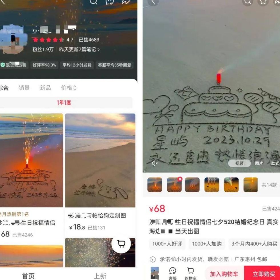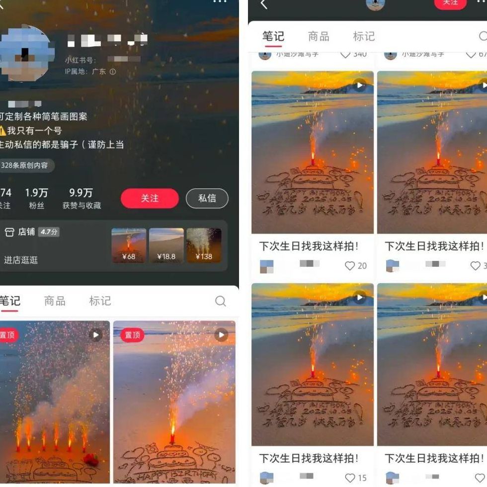最近我持续关注小红书上的各类小众细分领域,今天发现了一个颇为有趣的商业现象——沙滩写字定制。
