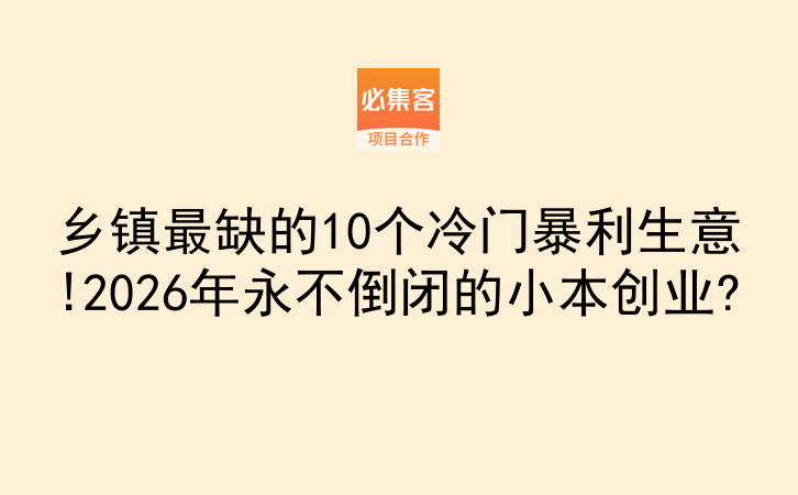 乡镇最缺的10个冷门暴利生意!2026年永不倒闭的小本创业?
