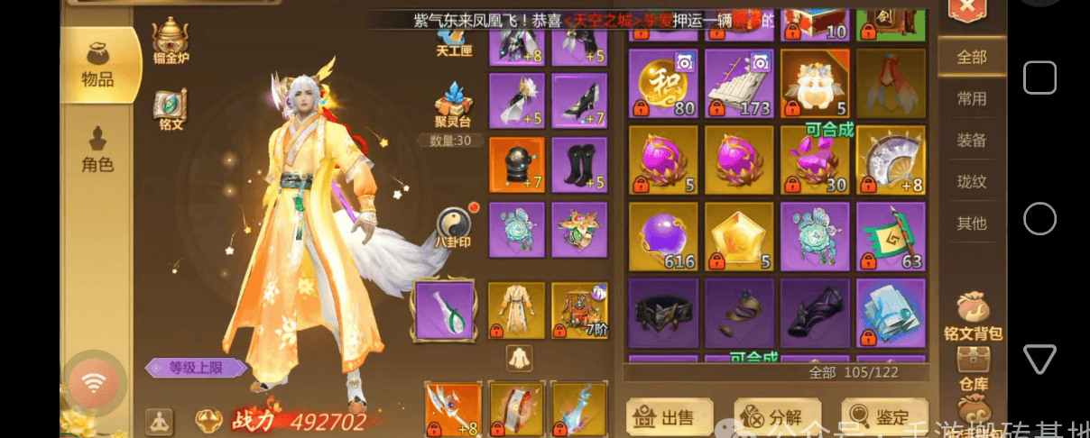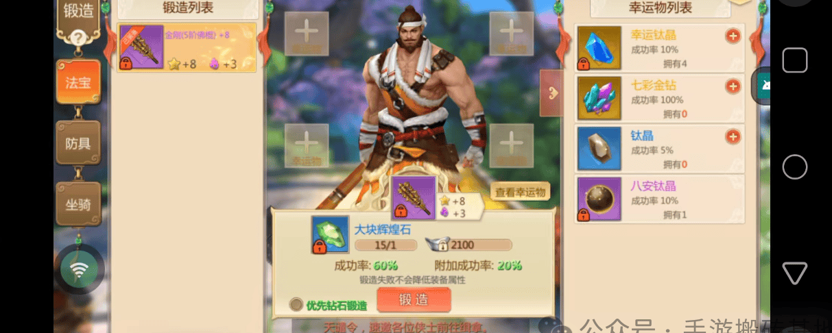 4、周二开区的账号,尽量在开服活动中获取100%锻造武器+7成功的石头,待合区后再进行武器+7操作。目前部分渠道有“+7成功后赠送100%满灵气石头”的活动,可尝试冲击+8,若失败可使用免费石头恢复。