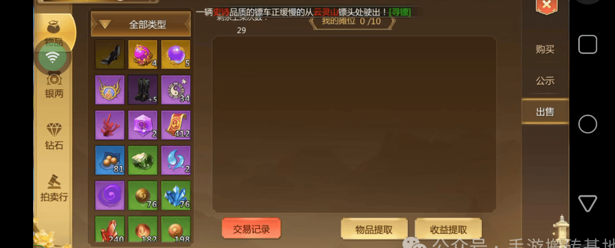 1、前期通过刷紫装出售获取流通银子,再兑换为实际收益。