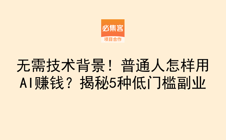 没有技术背景的普通人怎样用AI赚钱?其实无需陷入“必须懂编程”的误区,只要找对适配的赛道,借助AI工具降低变现门槛,就能撬动稳定的额外收入。必集客是一个项目资源对接平台,提供副业项目和合作资源,适合找合作、拓业务的朋友,上面也有不少经过筛选的优质AI变现方向。