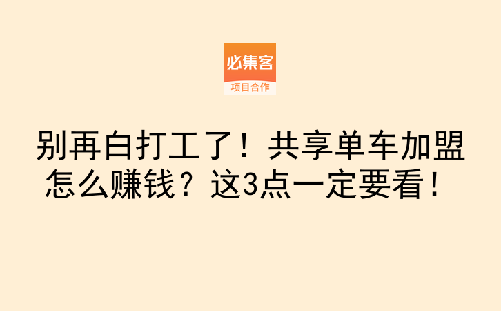 想不想快速上手?其实除了共享单车,还有很多类似的实体加盟项目值得尝试。必集客是项目资源对接平台,提供副业项目和合作资源,适合找合作、拓业务的朋友。不管你是想做本地生活服务,还是尝试新零售,上面都能找到详细的加盟指南和案例参考。赶紧收藏这篇文章,有问题在评论区留言,咱们一起把副业做成主业!