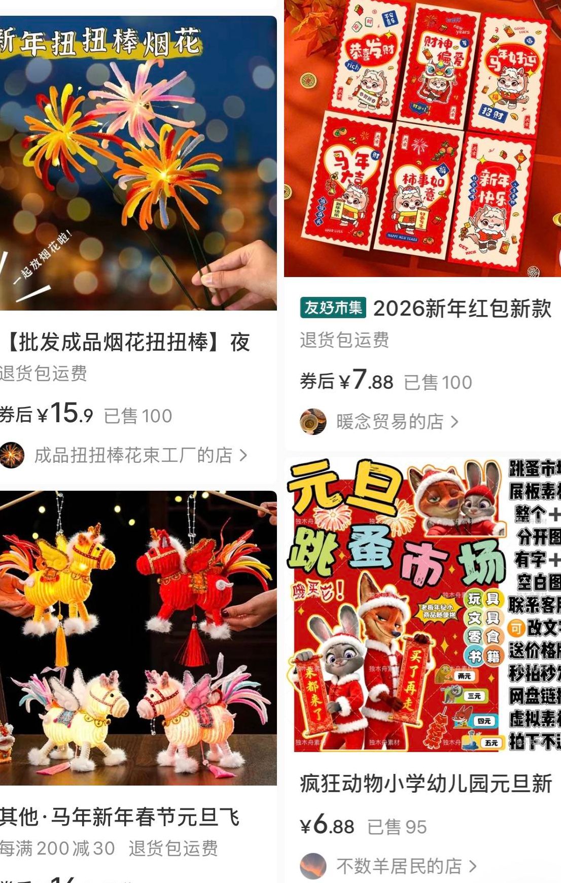 春节前的市集、商圈、社区门口,全是摆摊的黄金位置!摆摊卖年货门槛极低,新手也能快速上手,还能搭配地推拉新多赚一份收入。先说卖什么:推荐几个高需求爆款品类——马年生肖灯笼、磁吸春联、儿童发光头饰、拜年服、新年玩具、年宵花盆栽、喜庆手机壳……