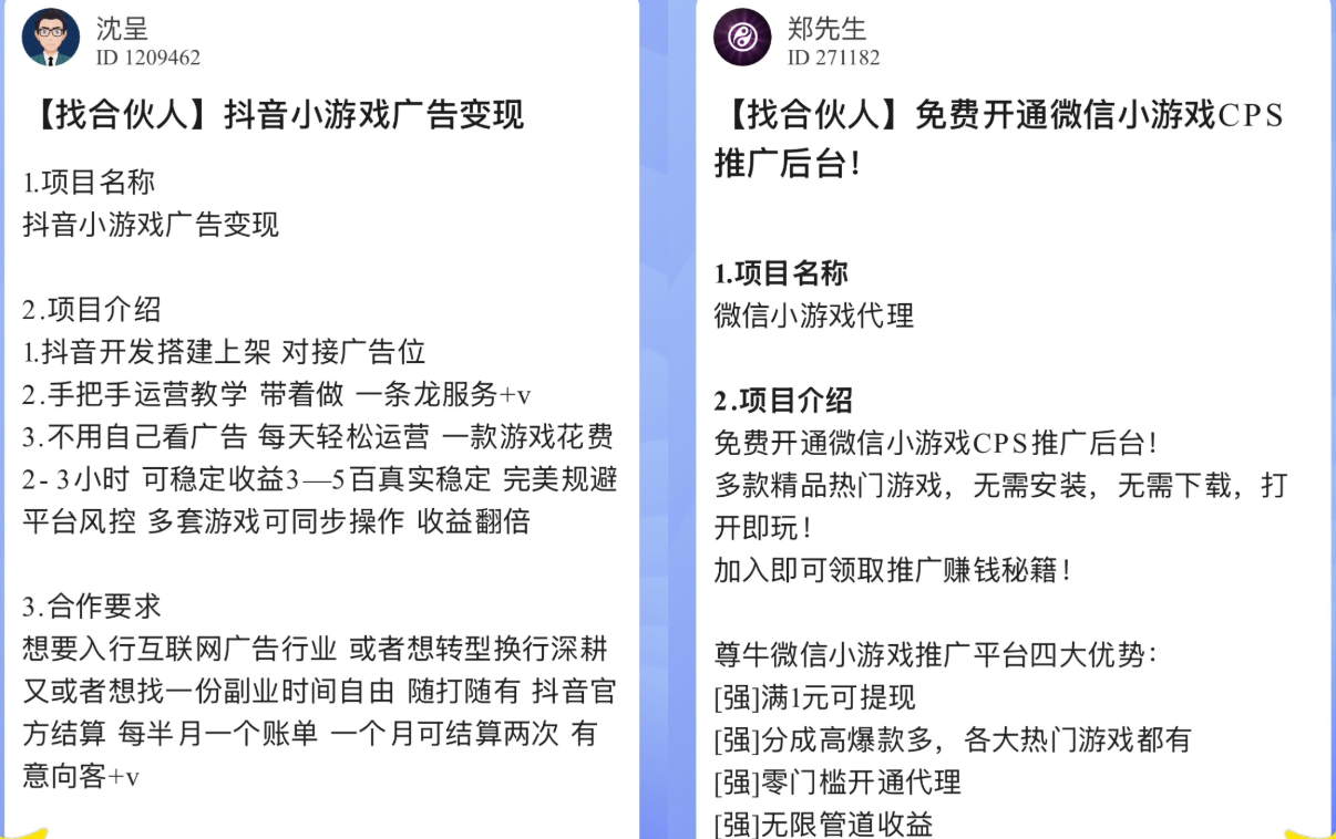 例如小游戏赚钱板块,平台上有不少类似抖音小游戏赚钱、微信小游戏赚钱的项目,主要分为两大类:一类是自行试玩赚钱,另一类是推广赚钱,两种模式可自主选择,能满足不同人群的赚钱需求。