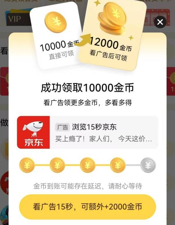 单个广告最高可以达到2500金币,再加上500的转化金币,也就是3000金币,按30000:1的比例,就是0.3元。