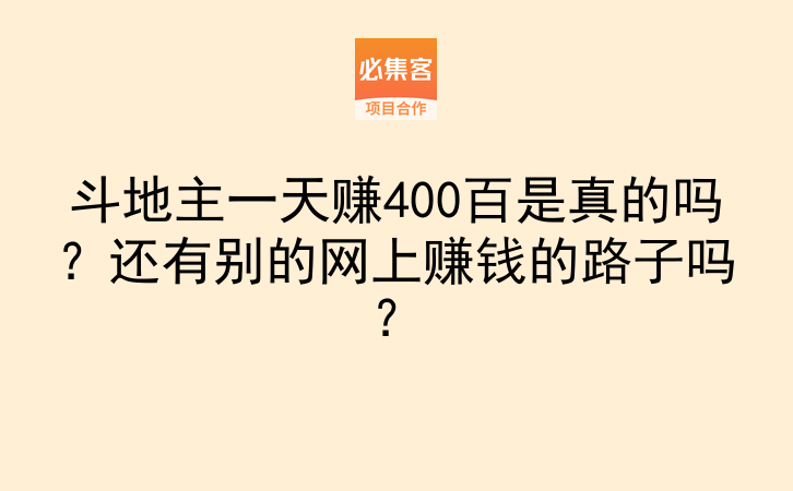 斗地主一天赚400百是真的吗?还有别的网上赚钱的路子吗?