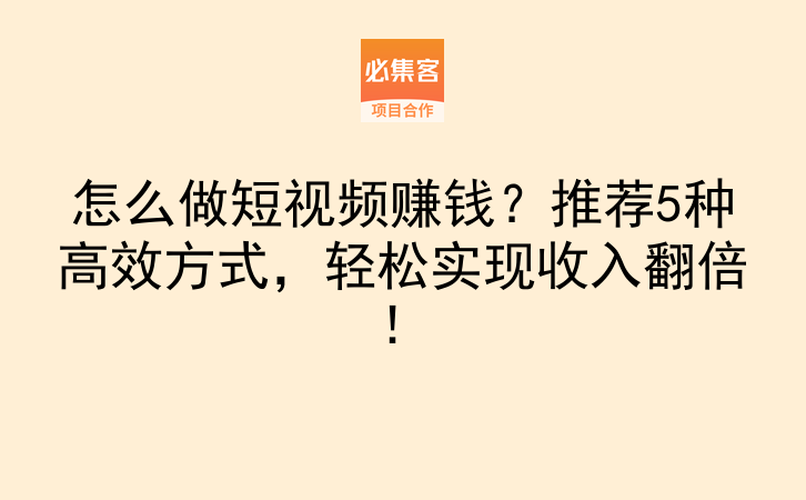 怎么做短视频赚钱?推荐5种高效方式,轻松实现收入翻倍!