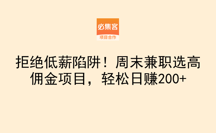 拒绝低薪陷阱!周末兼职选高佣金项目,轻松日赚200+