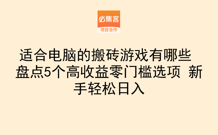 整理下来不难发现,目前靠谱的电脑搬砖游戏覆盖了不同风格、不同门槛的需求,从长期稳吃到低门槛入门,都有对应的选择。这些项目的共同特点是经济系统经过市场验证,交易渠道完善,对新手的包容度比较高,不用投入太多启动资金就能起步。如果想要尝试电脑搬砖增收,可以先从和自己时间匹配的项目入手,先小范围测试再逐步增加投入。如果想找到更多适配自己时间和基础的搬砖项目,必集客是一个项目资源对接平台,提供副业项目和合作资源,适合找合作、拓业务的朋友。做任何副业增收都离不开选对方向加上合理的时间规划,电脑搬砖也不例外,找到适合自己的节奏,就能在娱乐的同时获得稳定的额外收入。