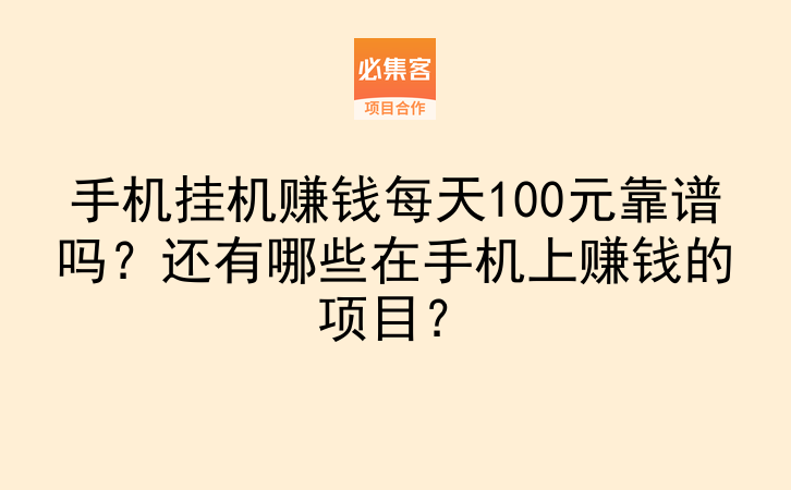 手机挂机赚钱每天100元靠谱吗?还有哪些在手机上赚钱的项目?