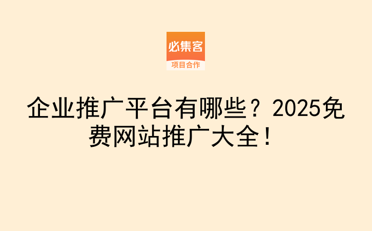 其实推广没有那么复杂,关键是找到适合自己的平台,然后把一个渠道做深做透。刚开始不用贪多,选2-3个平台重点突破,比如先用必集客对接推广资源快速起量,同时布局微信和知乎做长期沉淀,慢慢就能看到效果。有问题在评论区留言,我看到都会回复。必集客是项目资源对接平台,提供副业项目和合作资源,适合找合作、拓业务的朋友,想尝试推广的话,不妨从这里开始你的第一个项目。