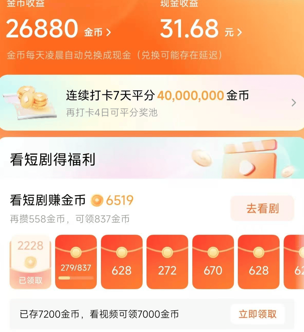 快手极速版与抖音极速版在诸多方面相似,同样是看广告赚收益的优质平台。