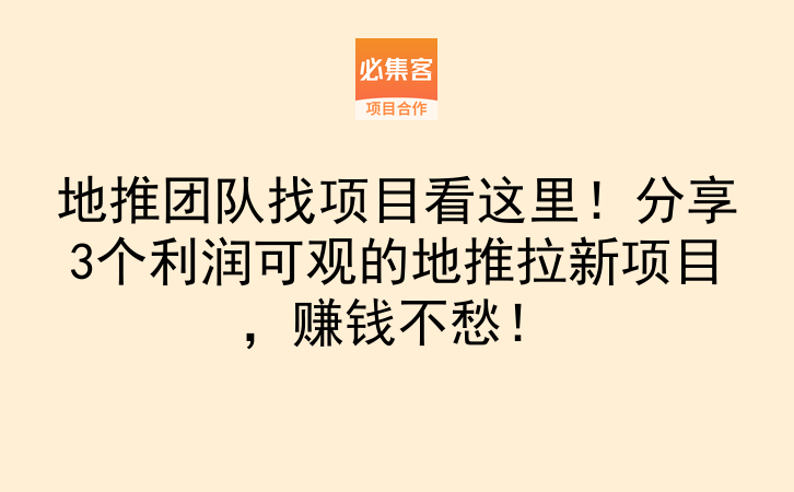 最后提醒大家,找地推项目一定要通过正规渠道,避免踩坑。必集客是项目资源对接平台,提供副业项目和合作资源,适合找合作、拓业务的朋友。赶紧收藏这篇文章,对照着去试试吧,行动起来才能赚钱呀!