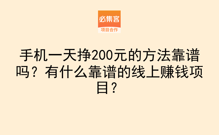 手机一天挣200元的方法靠谱吗?有什么靠谱的线上赚钱项目?