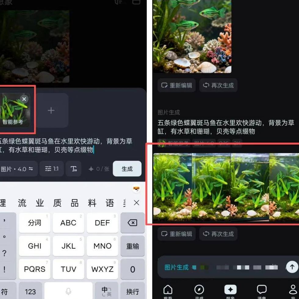 ①有时候AI可能会有点“小调皮”,生成的图片或视频里,鱼的模样会有点奇怪。别担心,多尝试几次,或者换几个描述关键词,一般就能解决问题啦。